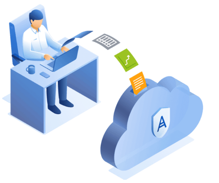 Ciesz się uproszczoną konfiguracją i obsługą rozwiązania, bez potrzeby instalacji agentów w środowisku lokalnym. Agent pracuje w bezpiecznej chmurze Acronis.